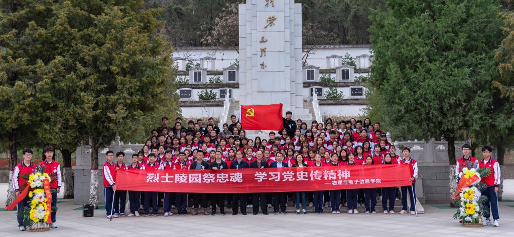 黄土有幸埋忠骨,烈士英魂耀山河,在刻有“为人民而死虽死犹荣”的烈士纪念碑前,常胜伟、付旭向革命先烈敬献了花篮,全体师生党员向烈士鞠躬默哀,并集体献唱了《没有共产党就没有新中国》。