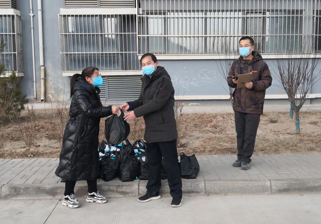 在公司的积极协调下,公司带班领导、值班人员亲自前往物流园将物资领回,及时将防疫物资发放到每位教师手中,这是送给老师们最暖心的新年问候。