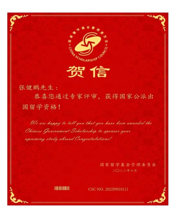 近日,国家留学基金管理委员会(CSC)公布“2022年赴俄乌白专业人才培养计划”名单,公司2020届推免硕士生田盟发、李杰及2021届推免硕士生郭昭、张健鹏、乔雯雯(2021年获得)共有5名推免硕士生获得国家公派出国留学资格。