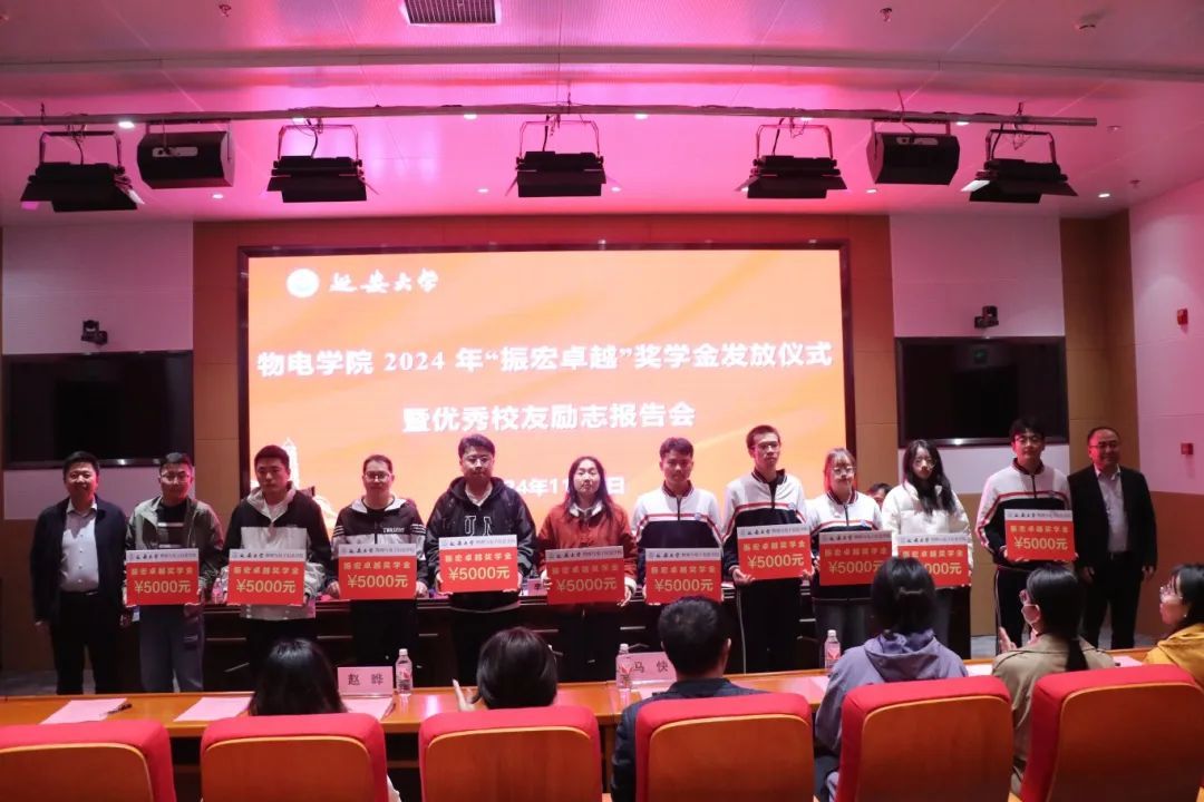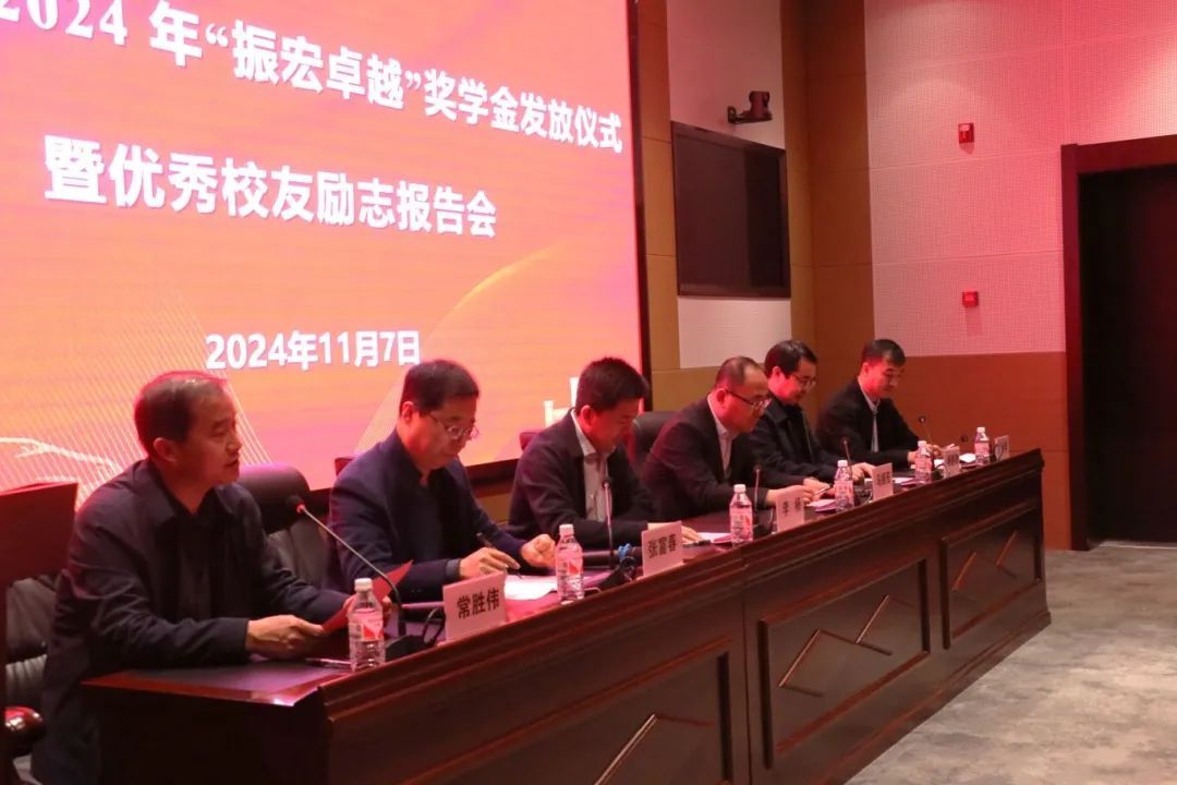 11月7日下午,公司在图书馆一楼报告厅举行“振宏卓越”奖学金发放仪式暨员工励志报告会。副董事长李杨,奖学金捐资人、公司92级物理学员工、深圳宏崎达技术有限公司董事长马振宏及公司相关业务负责人,经理张富春、副经理杨能勋、副书记肖金学出席活动,公司相关教师、获奖员工及100余名员工代表参加活动。活动由公司党委书记常胜伟主持。