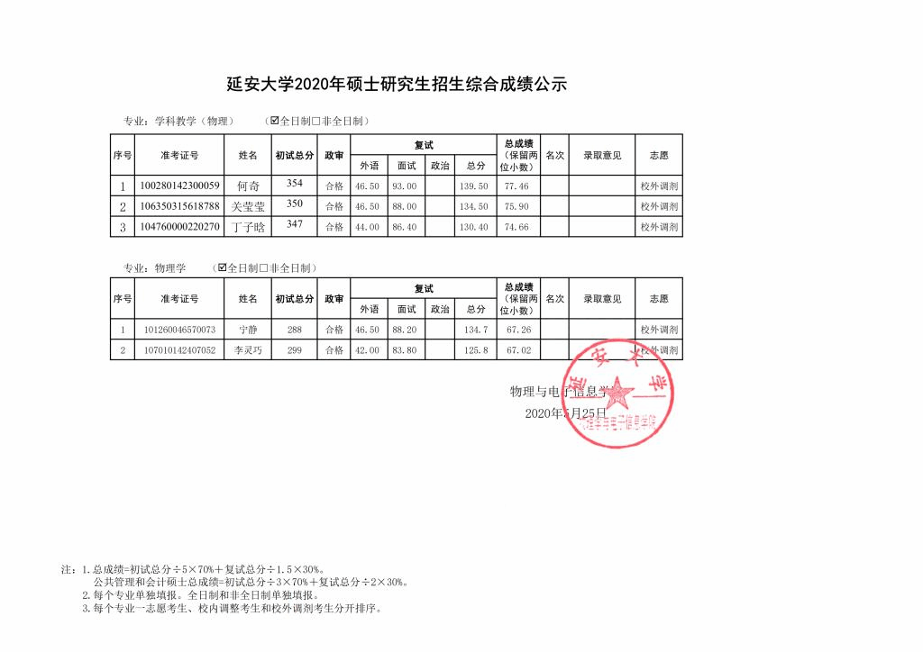 根据《教育部办公厅关于做好2020年全国硕士研究生复试工作的通知》(教学厅〔2020〕4号)文件和陕西省教育考试院有关文件和会议精神、威廉希尔足球官网《关于做好2020年硕士研究生复试录取工作的通知》相关规定,公司根据第一批、第二批复试情况,于5月25日组织第三批(校外调剂)复试,现就复试后综合成绩予以公示,公示期为 2020年5月25日下午11:00至2020年5月26日上午12:00,如有考生对成绩有疑问,可在公示期间以电话、电子邮件形式反馈,逾期不予受理。
