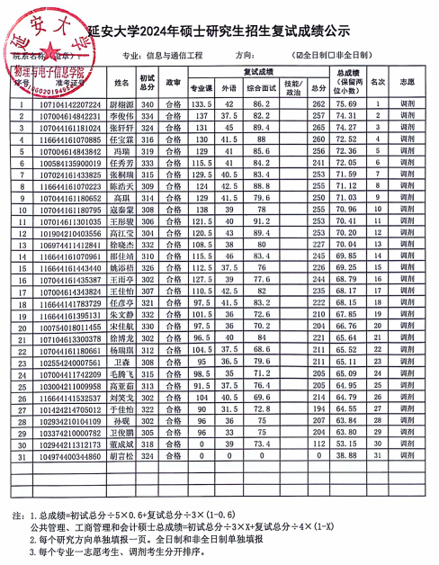 依照公司2024年硕士研究生复试工作实施方案,安排在2024年4月12日的信息与通信工程调剂考生复试工作已经圆满结束,现将具体的复试成绩进行公示,公示时间为十个工作日。